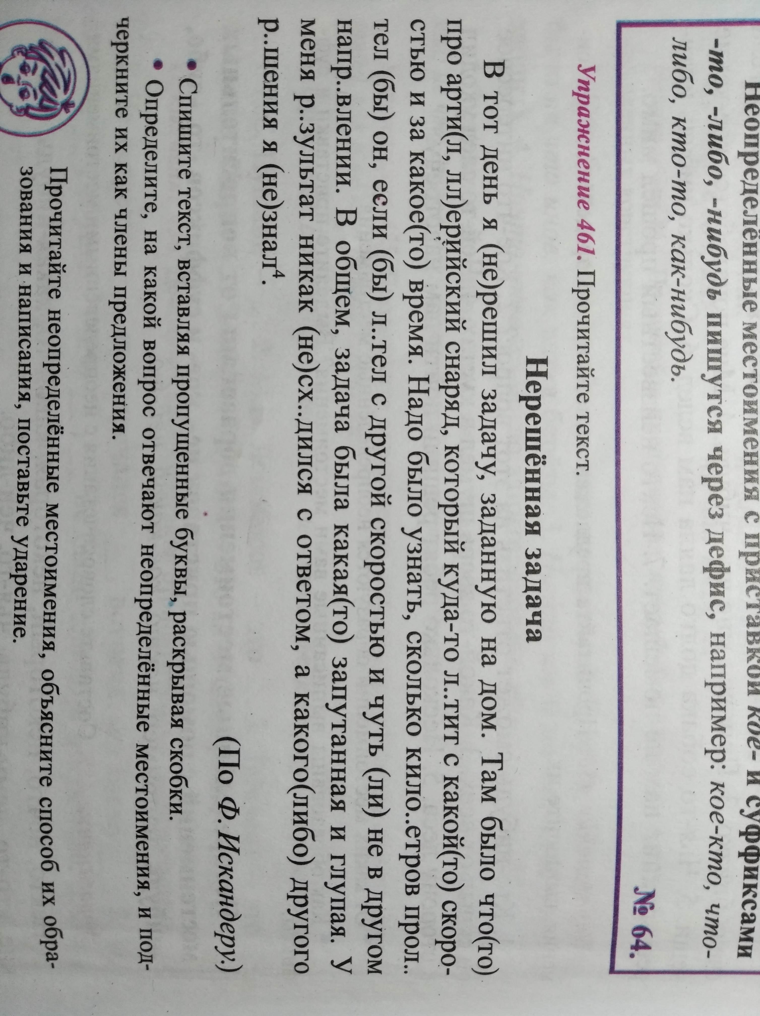 В тот день я не решил задачу, заданную дом. Там было что то про артиллерийский снаряд, который куда то летит с какой то скоростью и за какое то время. Надо было узнать сколько километров пролетел бы он, если бы летел с другой скоростью и чуть не в другом направлении. В общем, задача была какая то запутанная и глупая. У меня результат не как не сходится с ответом, а какого-либо другого решения я не знал.