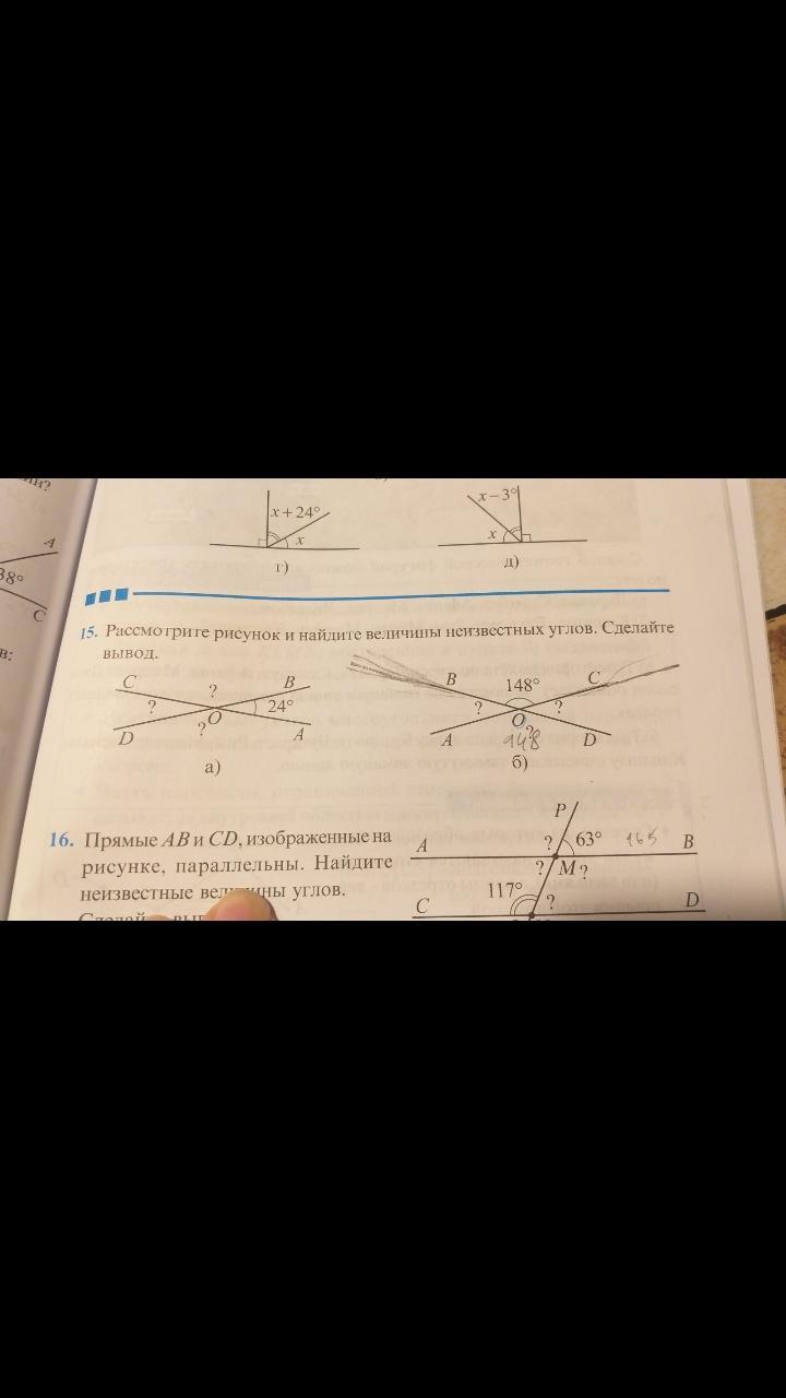 Даю 40 баллов.номер 15 б, Рассмотрите рисунок и найдите величины не известных углов.Сделайте вывод