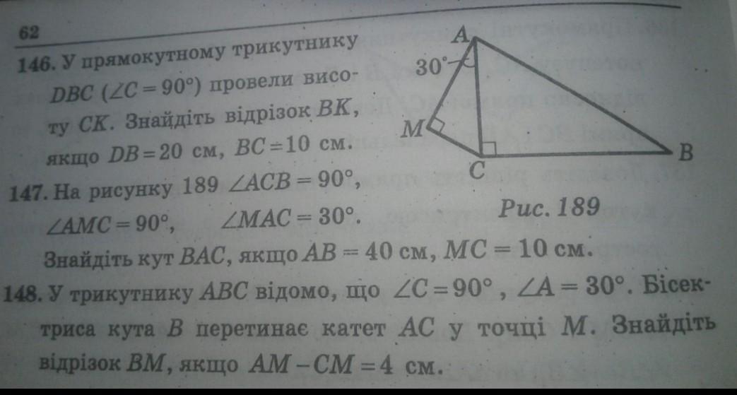 ЕСЛИ КАТЕТ РАВЕН ПОЛОВИНЕ ГИПОТЕНУЗЫ, ТО НАПРОТИВ ЛЕЖАЩИЙ УГОЛ РАВНЯЕТСЯ 30°