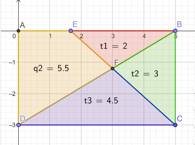 Площадь желтого четырёхугольника - 5,5 кв.ед.