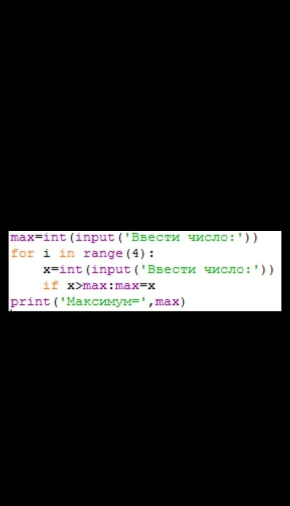 Ввести пять целых чисел, найти максимальное из них. Пример: