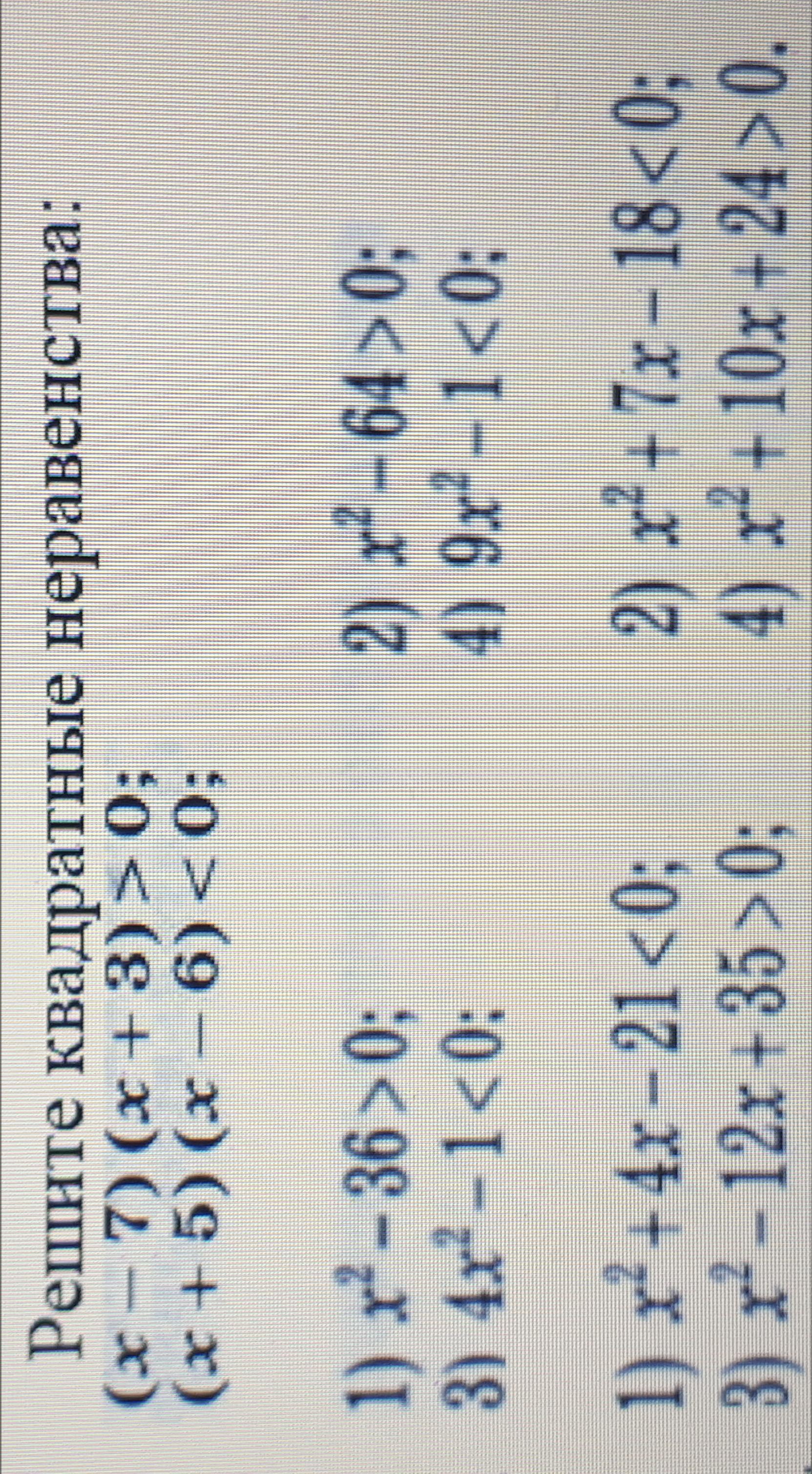 Снова схема графика, отмечаем х=5 и х=7, по графику ясно видно, что у>0 справа и слева от значений х, поэтому интервал решений неравенства х∈ (-∞, 5)∪(7, +∞);