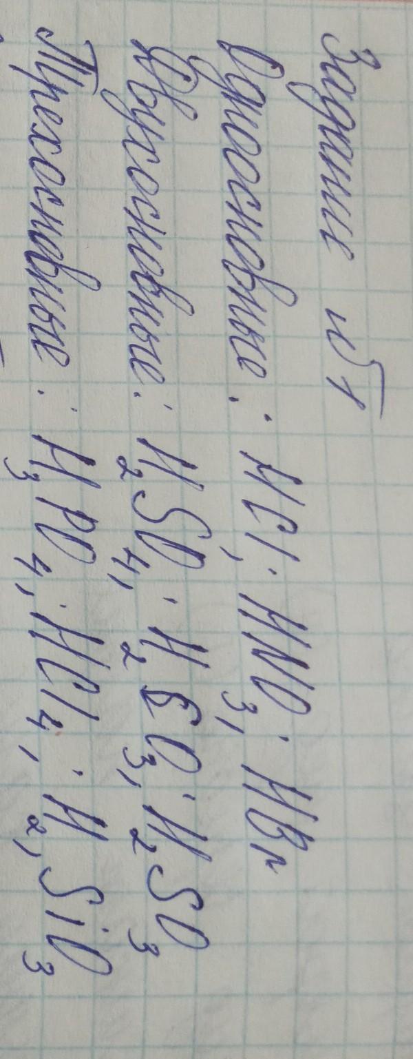 1) Разделите кислоты по числу атомов водорода H3PO4, HCl, HNO3, H2SO4, HBr, H2CO3, H2SO3, HClO4, H2SiO3