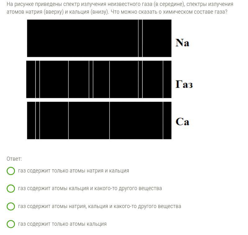 газ содержит атомы натрия,кальция и какого-то другого вещества
