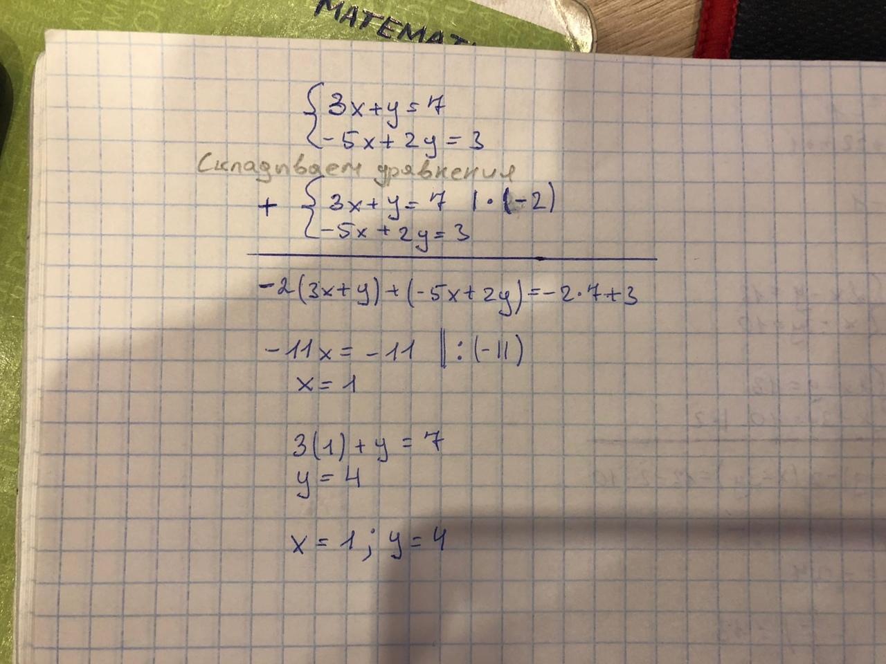 -5x+(20+4x)/3=3 x=1 =>y=7-3*1=4
