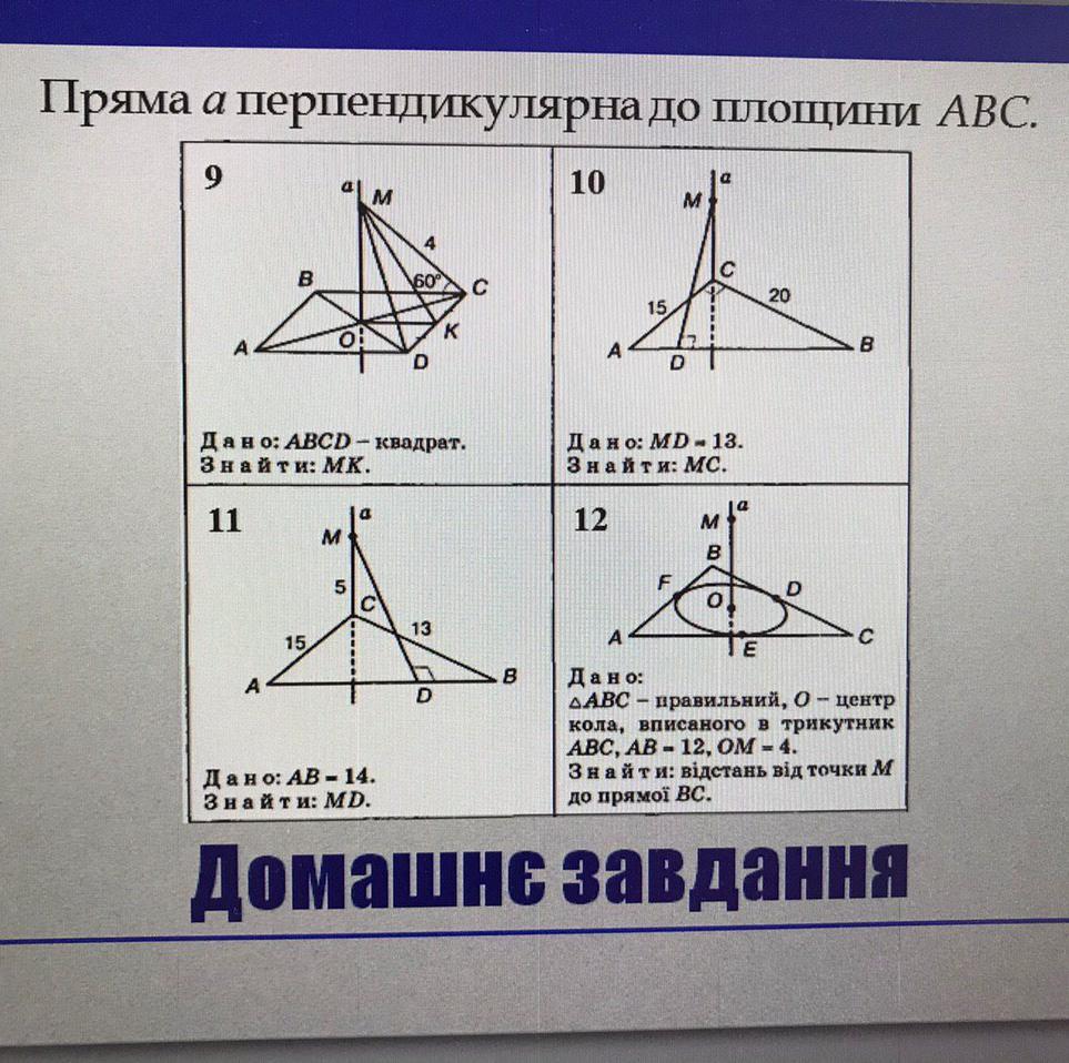 9) Рассмотрим треугольник МОС, где С=60°, О=90°, М=30° соответственно. Катет ОС лежит напротив угла 30°, значит, он будет вдвое меньше гипотенузы: ОС=МС/2=4/2=2. Катет МО найдем по теореме Пифагора: