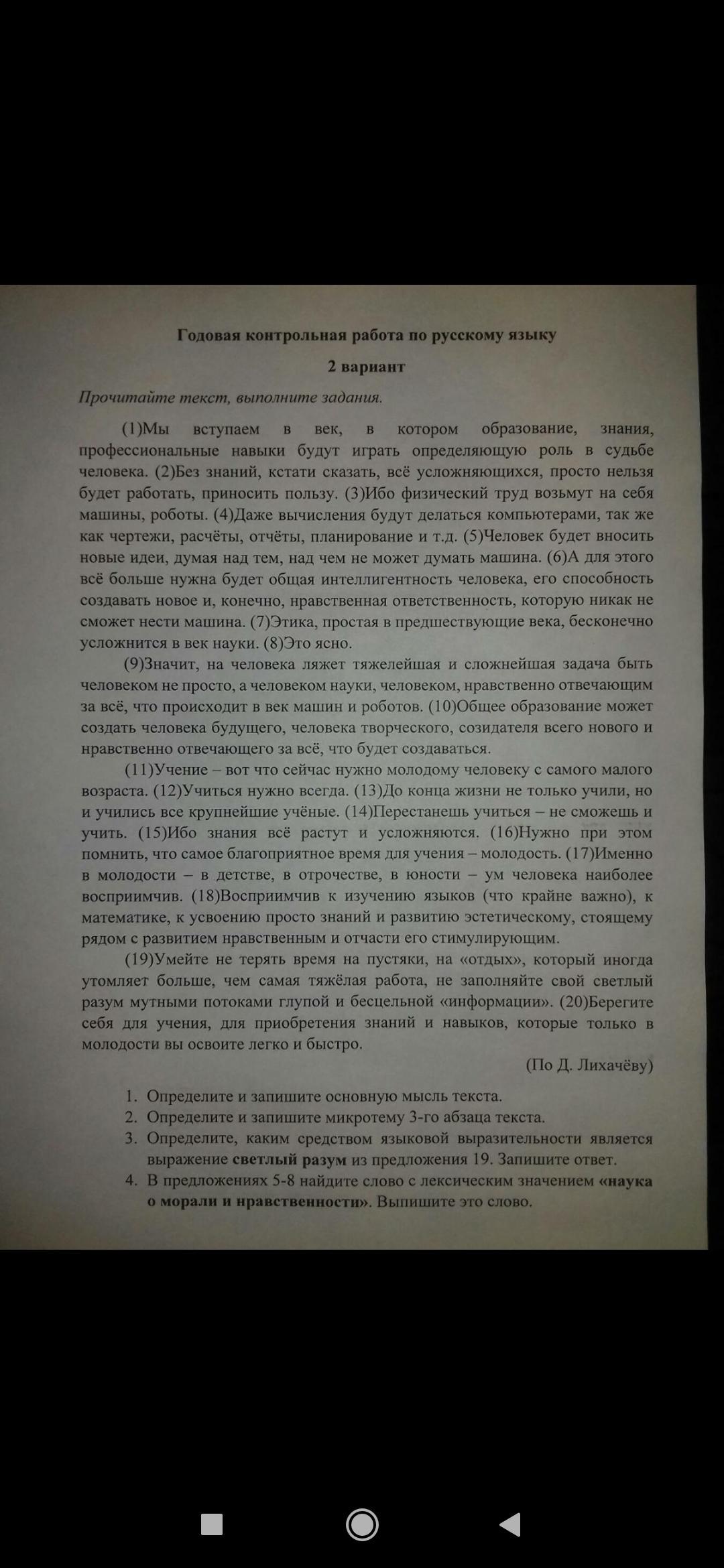 1. Главная мысль : как учёба важна в жизни человека. Или знания для человека