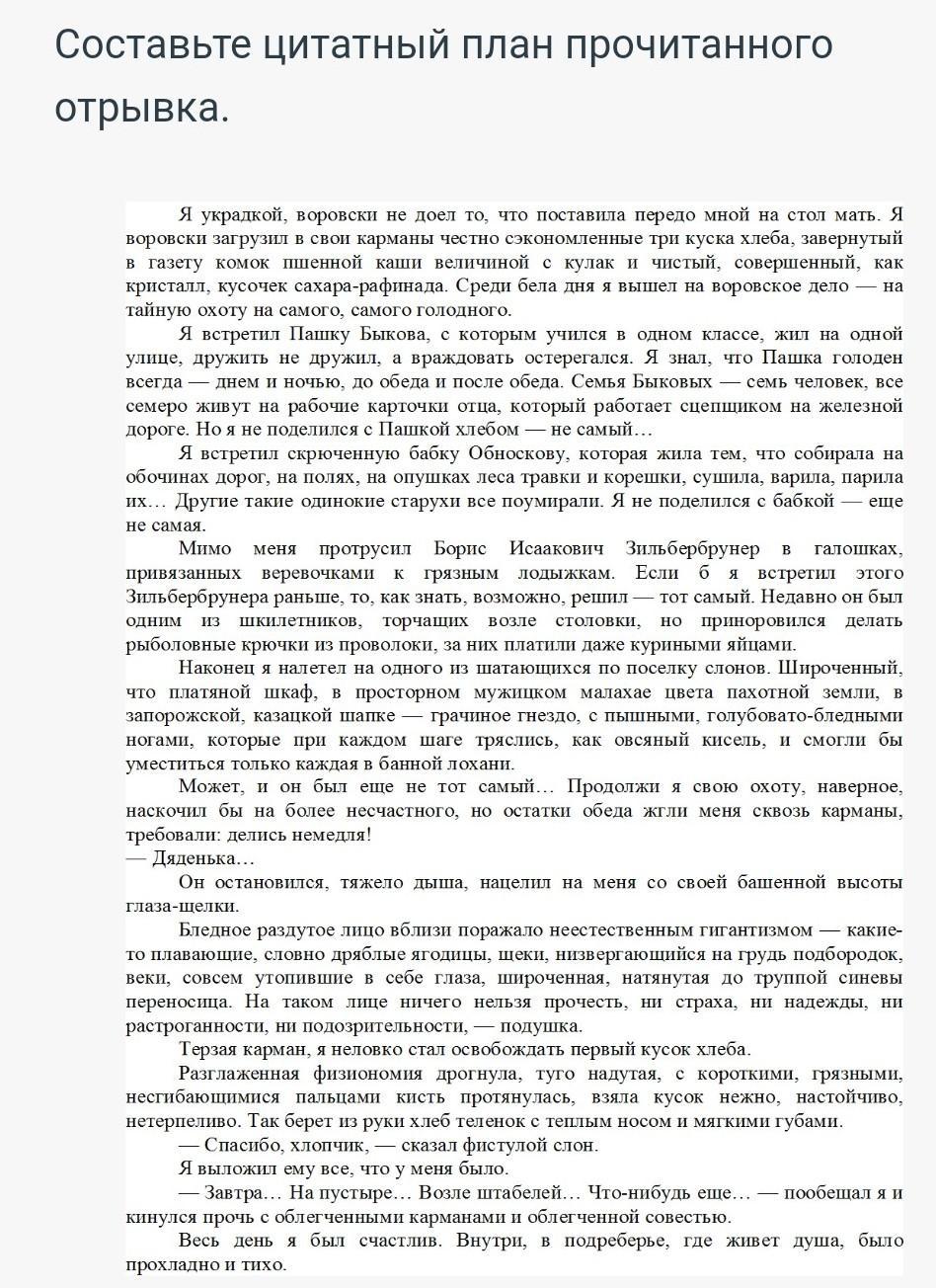 Отрывок из рассказа "Хлеб для собаки"​. Составьте цитатный план