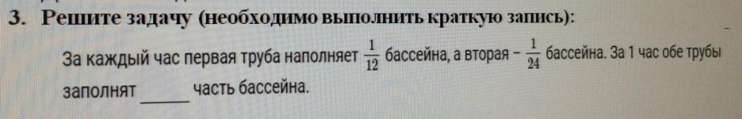 1)Через обе трубы одновременно в час наполняется 1/12+1/24=2/24