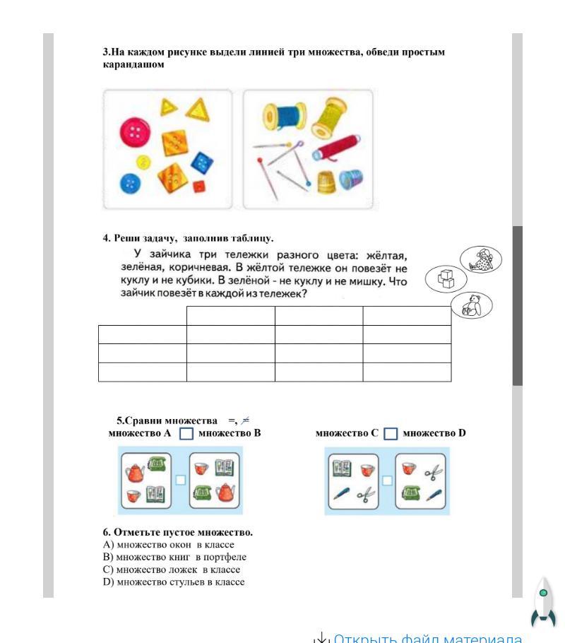 3.1) множества: квадратные пуговицы, круглые пуговицы и треугольные пуговицы