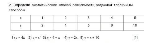 зависимость такая, что каждому иксу в столбце соответствует игрек значение которого в 2 раза больше значения икса. проверь,