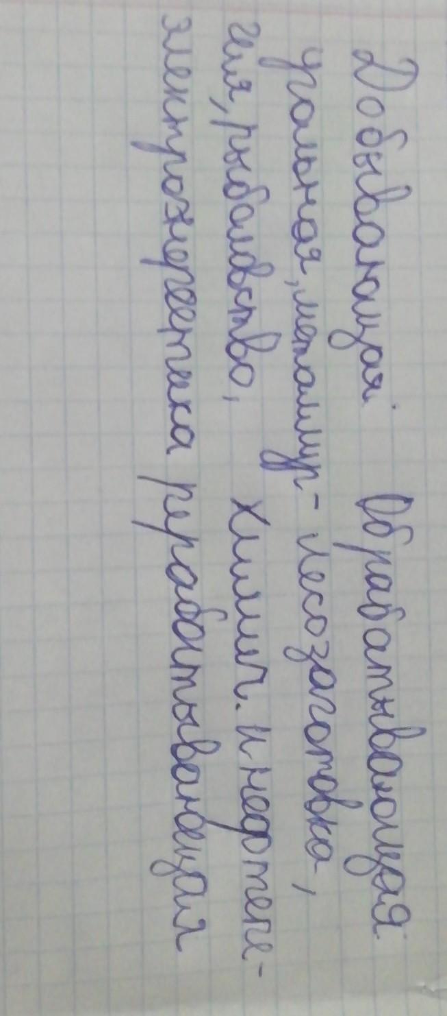 Слова для справок: угольная, лесозаготовка, рыболовство, химическая, машиностроение, металлургия, нефтеперерабатывающая, электроэнергетика