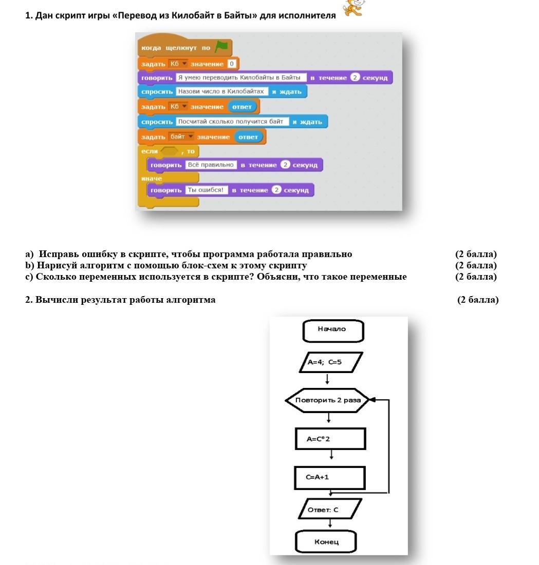 b) Нарисуй алгоритм с помощью блок-схем к этому скрипту