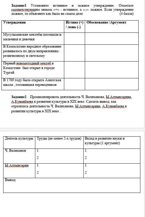 Задание2 Проанализироват деятельность Ч. Валиханова, Ы.Алтынсарина, А.Кунанбаева в развитии культуры в XIX веке. Сделать вывод, как отразилась деятельность Ч. Валиханова, Ы.Алтынсарина, А.Кунанбаева в развитии культуры в XIX веке .