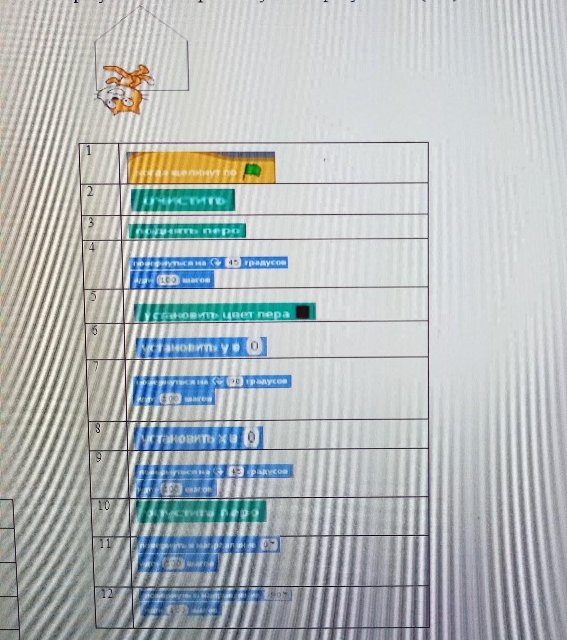 Запишите правильную последовательность цифр так чтобы получилась программа в результате которой получается рисунок