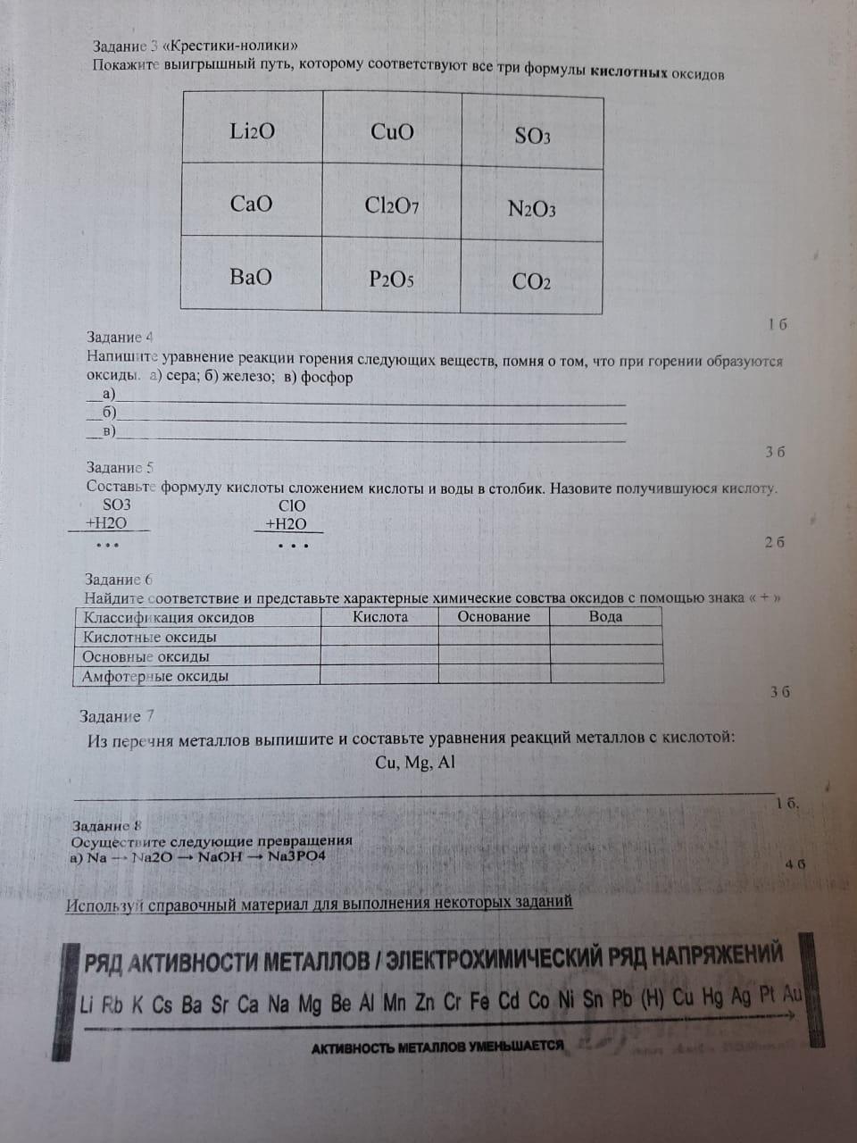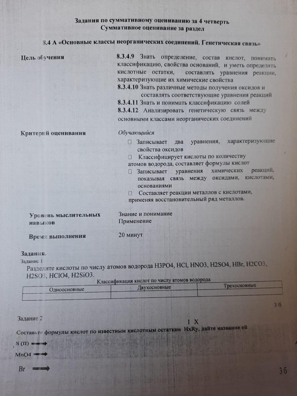 сор 1 по химии 8 класс 4 четверть
