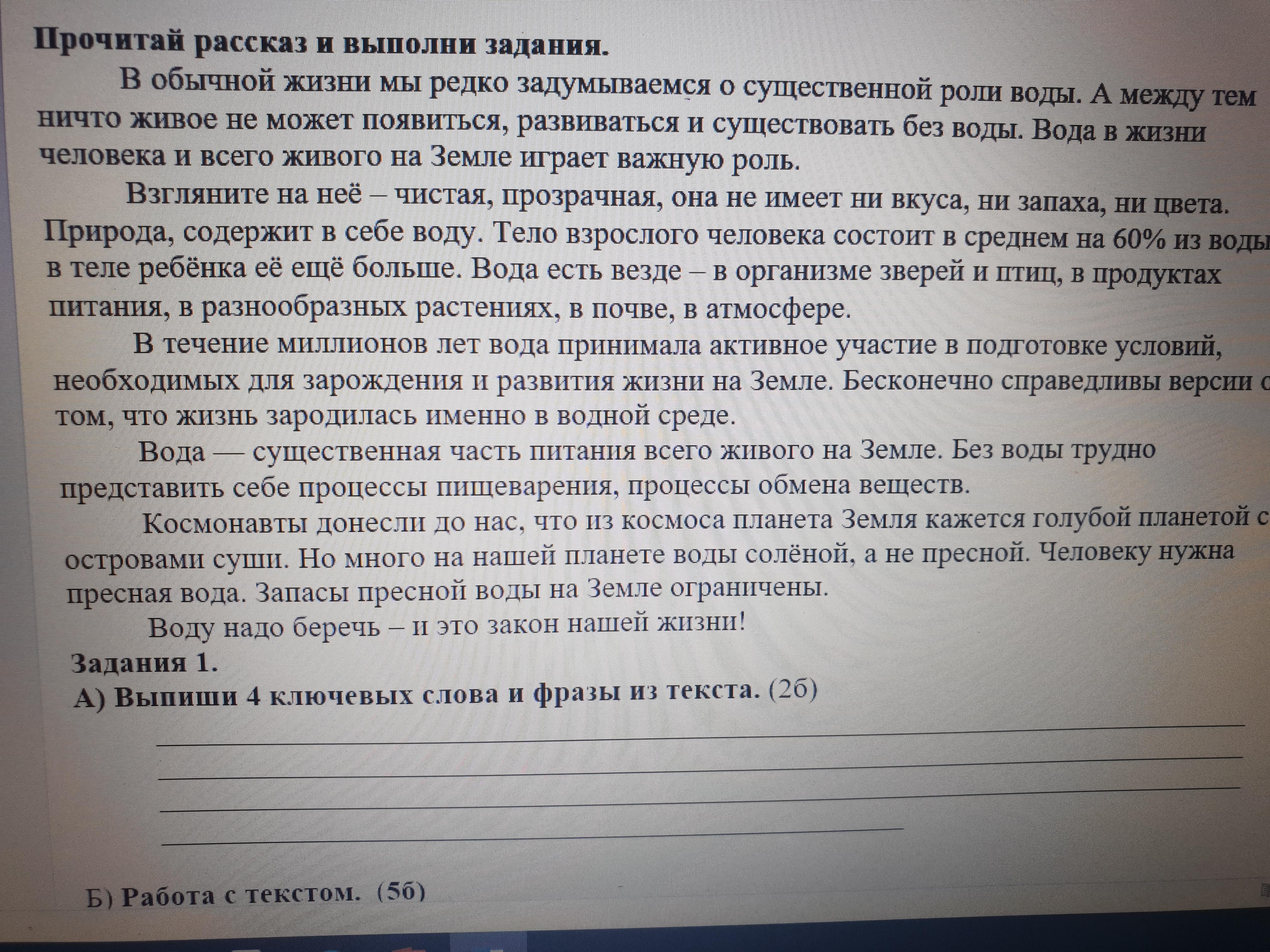 Мысль текста: Вода-существенная часть питания всего живого на земле.