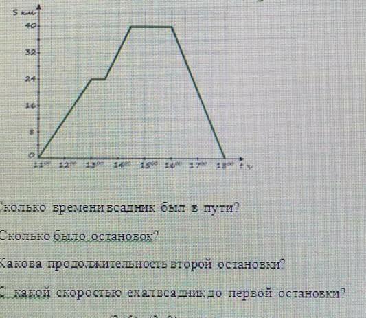 сколько времени всадник был в пути? сколько было остоновок? какова продолжительность второй остановки? с какой скоростью ехал всадник до первой оостоновки. СРОЧНО НУЖНО!