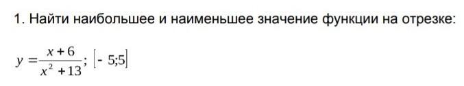 Найти наибольшее и наименьшее значение функции на отрезке y=(x+6)/x^2+13 ; [-5;5]​