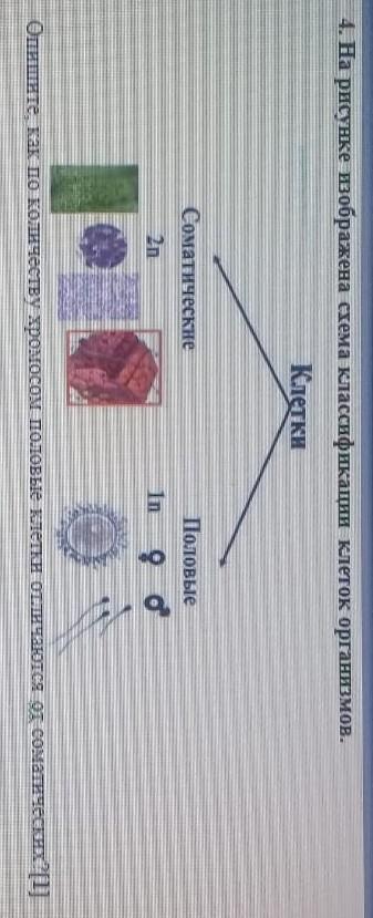 на риссунке изображена схема классификации клеток организма. Опишите, как по количеству хромосом половые клетки отличаются от соматических