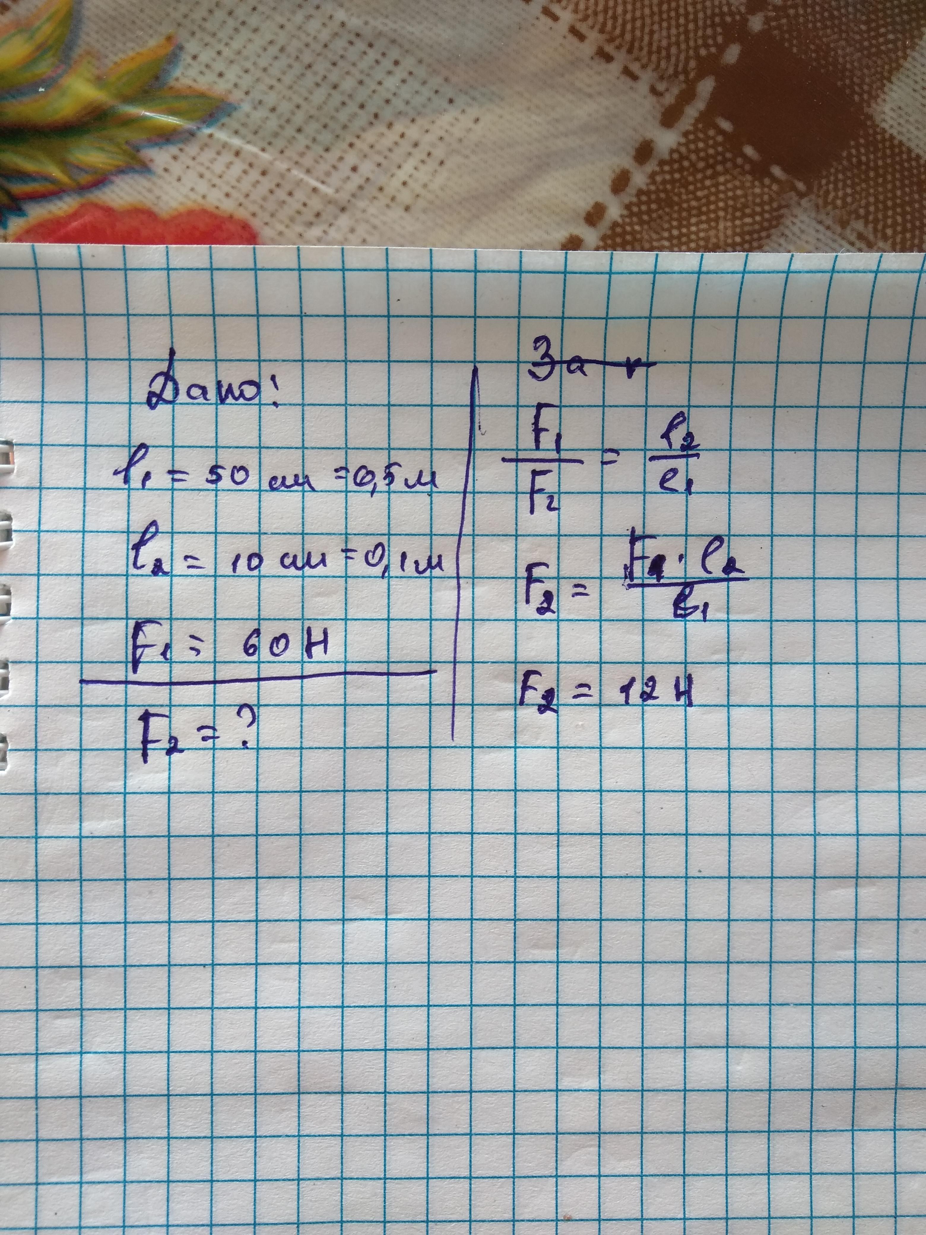 действует сила 60 Н. Какую силу надо приложить к большему плечу,