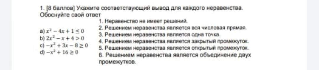 Укажите соответствующий вывод для каждого неравенства. Обоснуйте свой ответ. Помогите,срочноооо