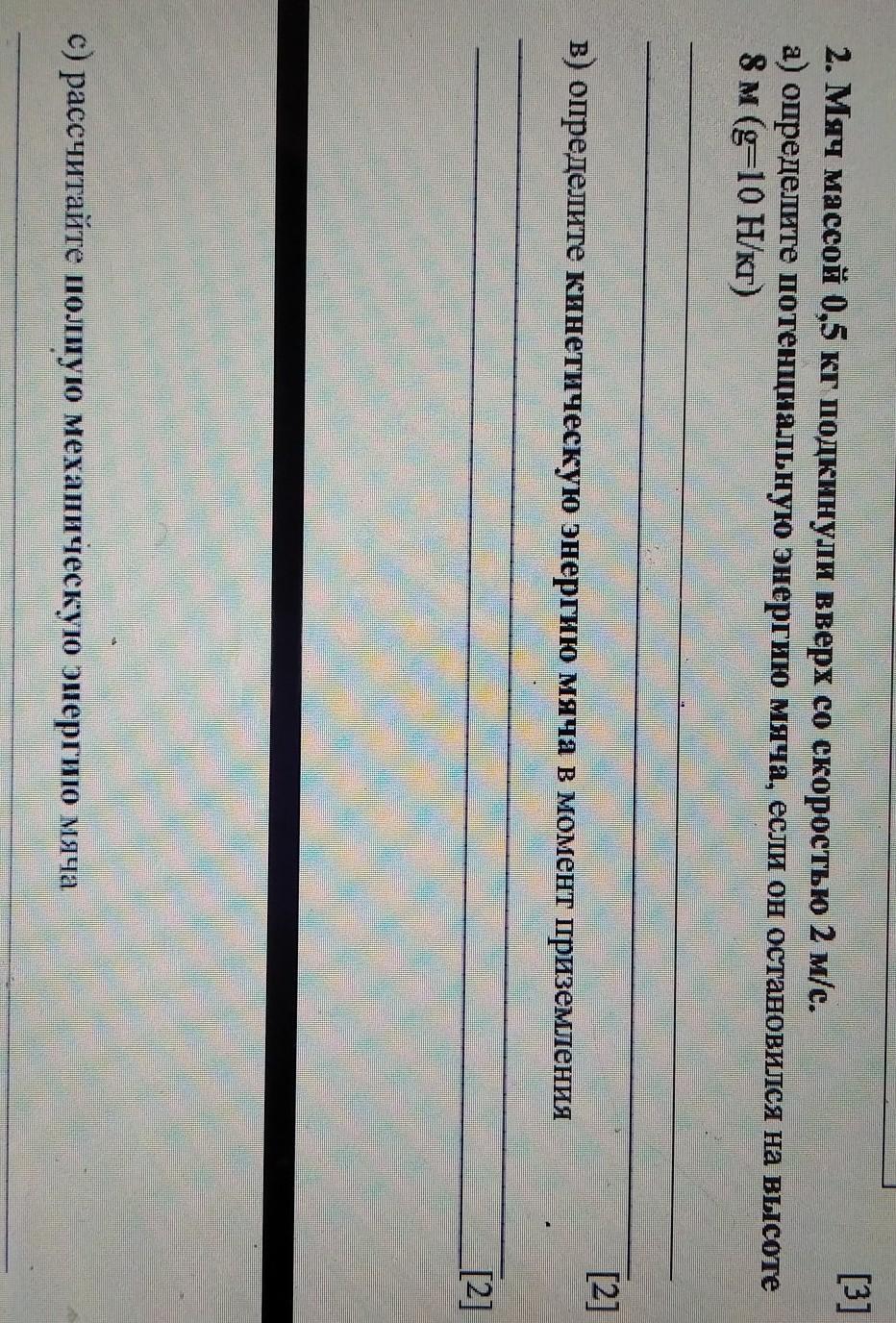 2. Мяч массой 0,5 кг подкинули вверх со скоростью 2 м/с.