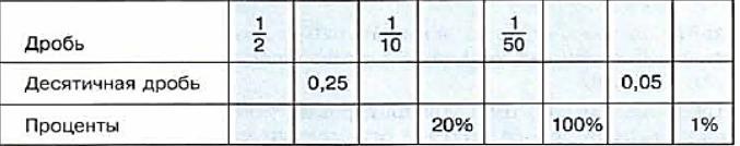 Проценты 50%; 25%; 10%; 20% ; 2% ; 100%; 5% ; 1%