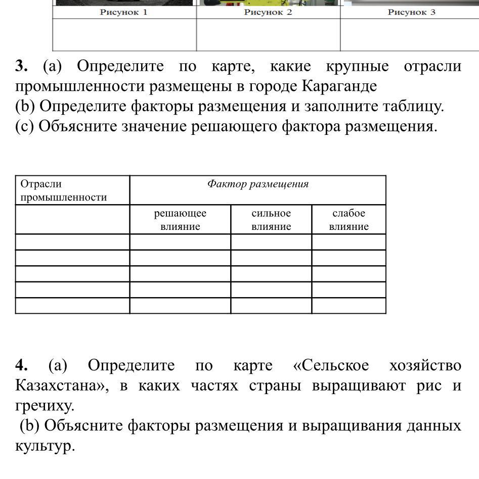 3. (a) Определите по карте, какие крупные отрасли промышленности размещены в городе Караганде