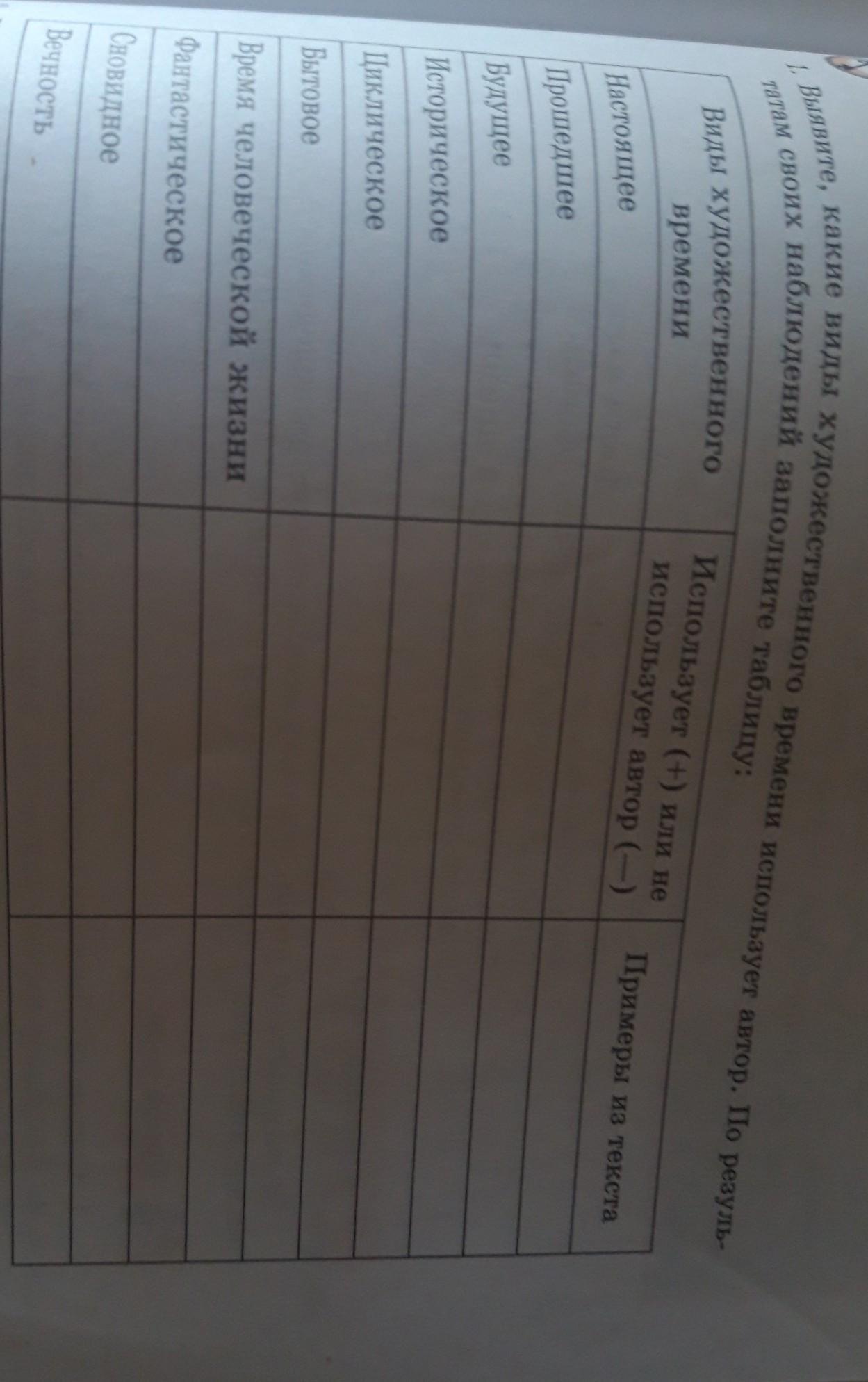 выявите какие виды художественного времени использует автор . по результатам своих наблюдений заполните таблицу :