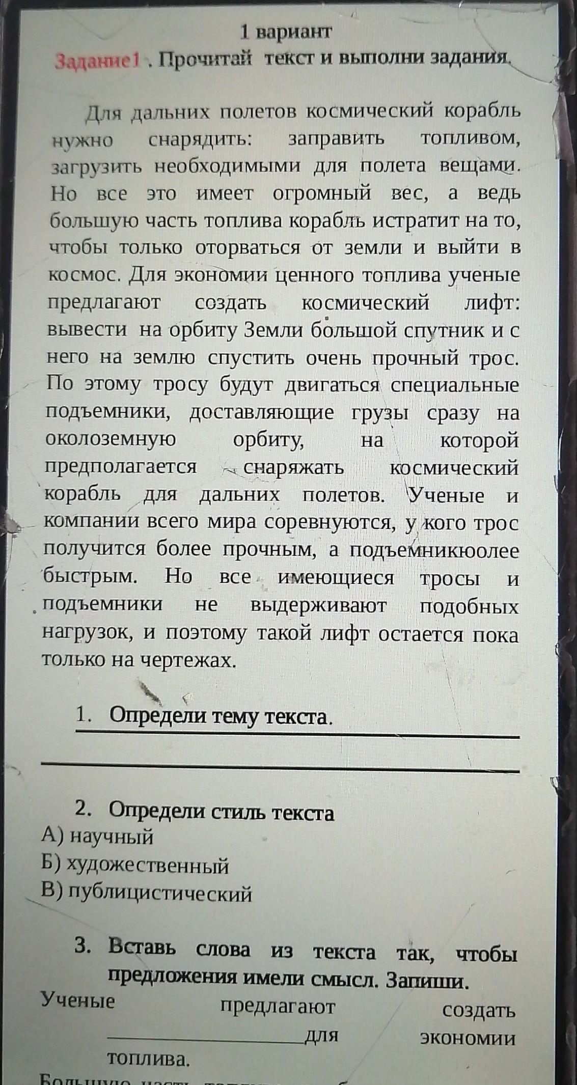 1) тема текста космос