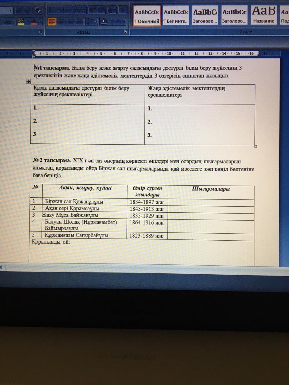 XIX ғ ән саз өнерінің көрнекті өкілдері мен олардың шығармаларын анықтап, қорытынды ойда Біржан сал шығармаларында қай мәселеге көп көңіл бөлгеніне баға беріңіз. Ақын, Шығармалары