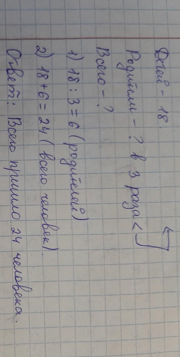 1) 18:3=6(чел)- взрослых
