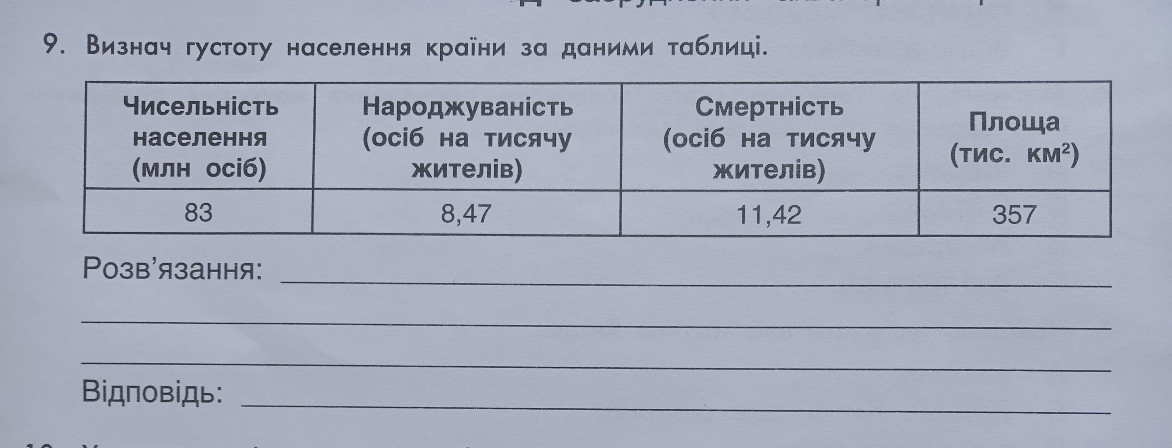 Формула: Густота населения = Н ( населення) :S ( площадь)= особа/кв.км