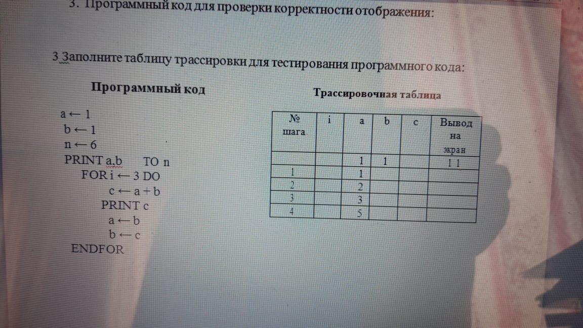3.Заполните таблицу трассировки для тестирования программного кода.