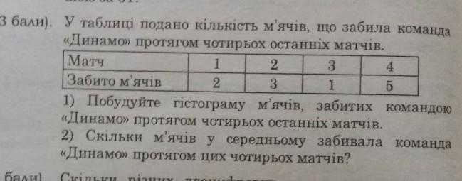 у таблиці подано кількість м'ячів що забила команда Динамо протягом чотирьох останніх матчів