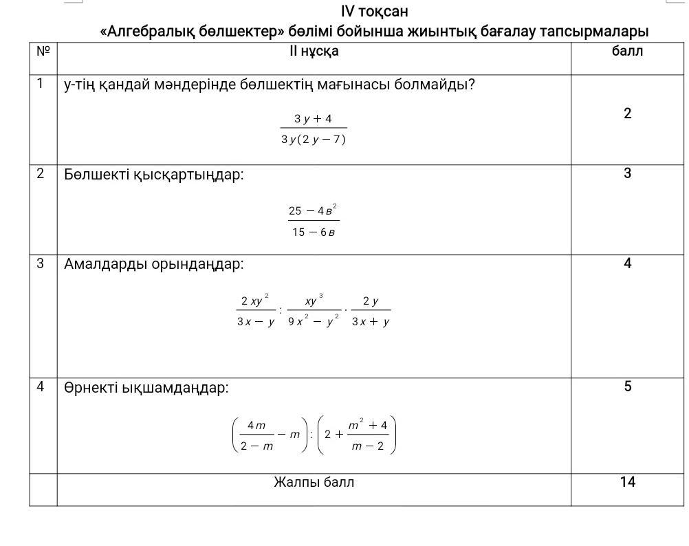 《АЛГЕБРА БӨЛШЕКТЕР》БӨЛІМІ БОЙЫНША ЖИЫНТЫҚ БАҒАЛАУ ТАПСЫРМАЛАРЫ ПОМОГИТЕ ОТВЕТЕТ НА ВСЕ