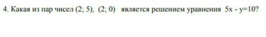 4. Какая из пар чисел (2; 5), (2; 0) является решением уравнения 5х - у=10?