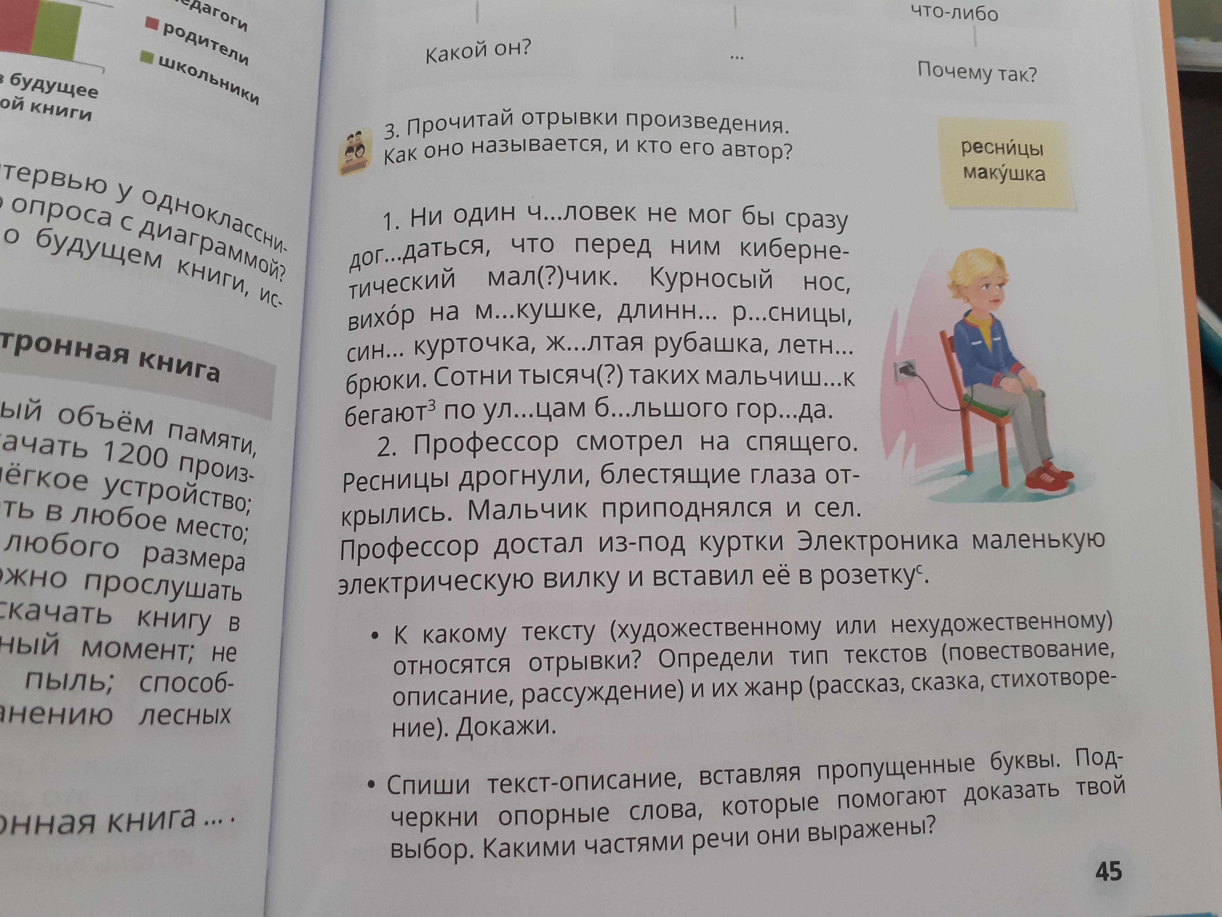 Доказательство: Кибернетический мальчик, курносый нос, вихор на макушке, длинные ресницы, синяя курточка, жёлтая рубашка, летние брюки.