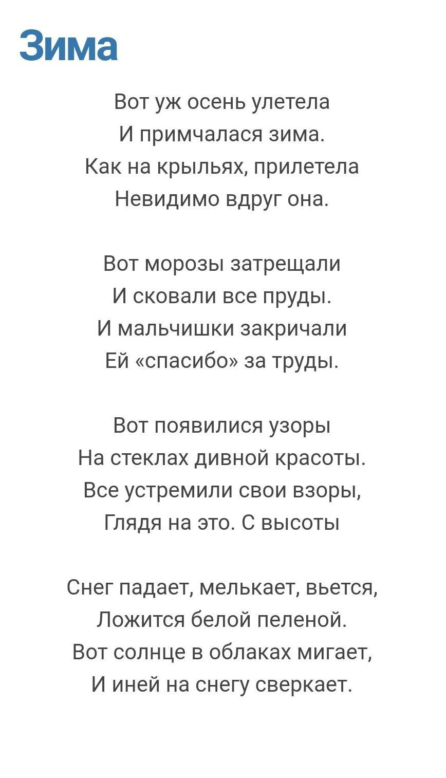 «Зима» — стихотворение, точная дата написания которого неизвестна. Исследователи творчества Есенина называют период с 1911 по 1912 год. Скорей всего, произведение сочинено во время обучения юного поэта в церковно-приходской школе, находившейся в Спас-Клепиках. Большая часть лирики, относящейся к тому периоду, отличается подражательным характером и скромной художественной ценностью. Было бы странно и нелепо обвинять в этом исключительно Сергея Александровича. Дело в том, что в Спас-Клепиках не нашлось ни одного преподавателя, который мог разглядеть в Есенине задатки великого лирика. Некому было сориентировать юношу в многообразии литературного мира. Все учителя оказались не способны помочь ему расти и развиваться в творческом плане.