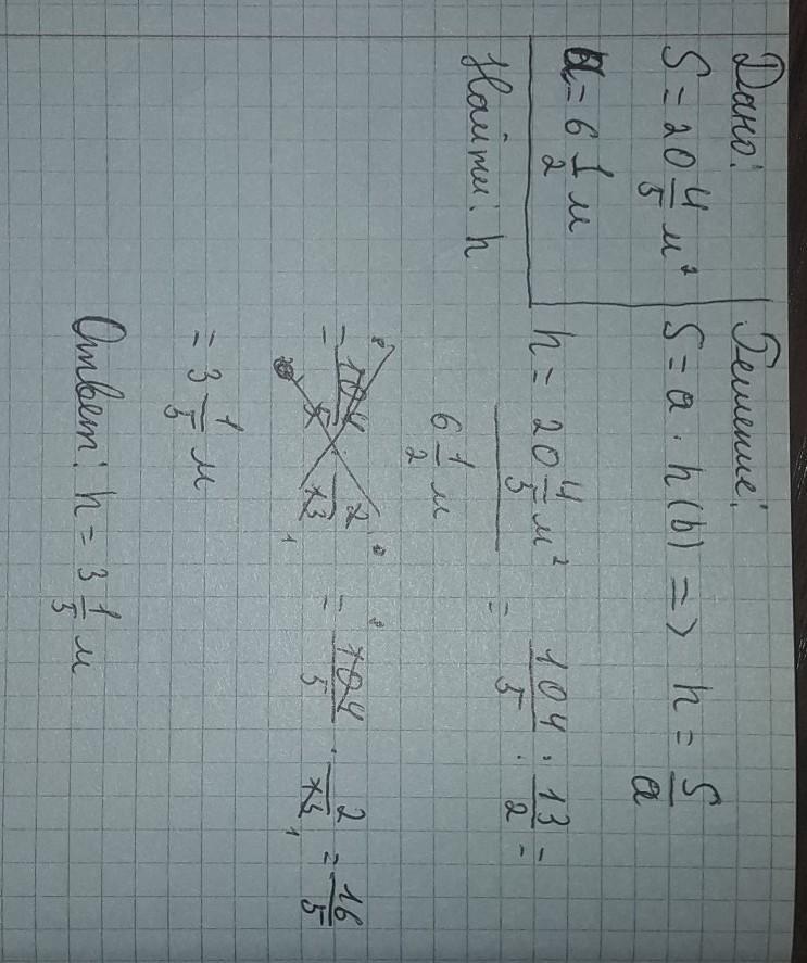 равна 20 ⅘м?, а основание равно 6 ½м.
