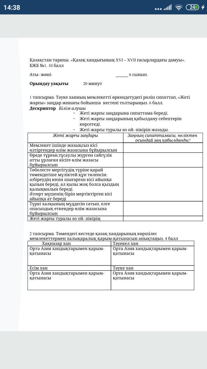 Пожалуйста помогите с СОР© ( ПО КАЗАХАСКИЙ~ - БЖБ ) Кто^ напишите правильно, нормально° дам "40 баллов" Внизу фото`