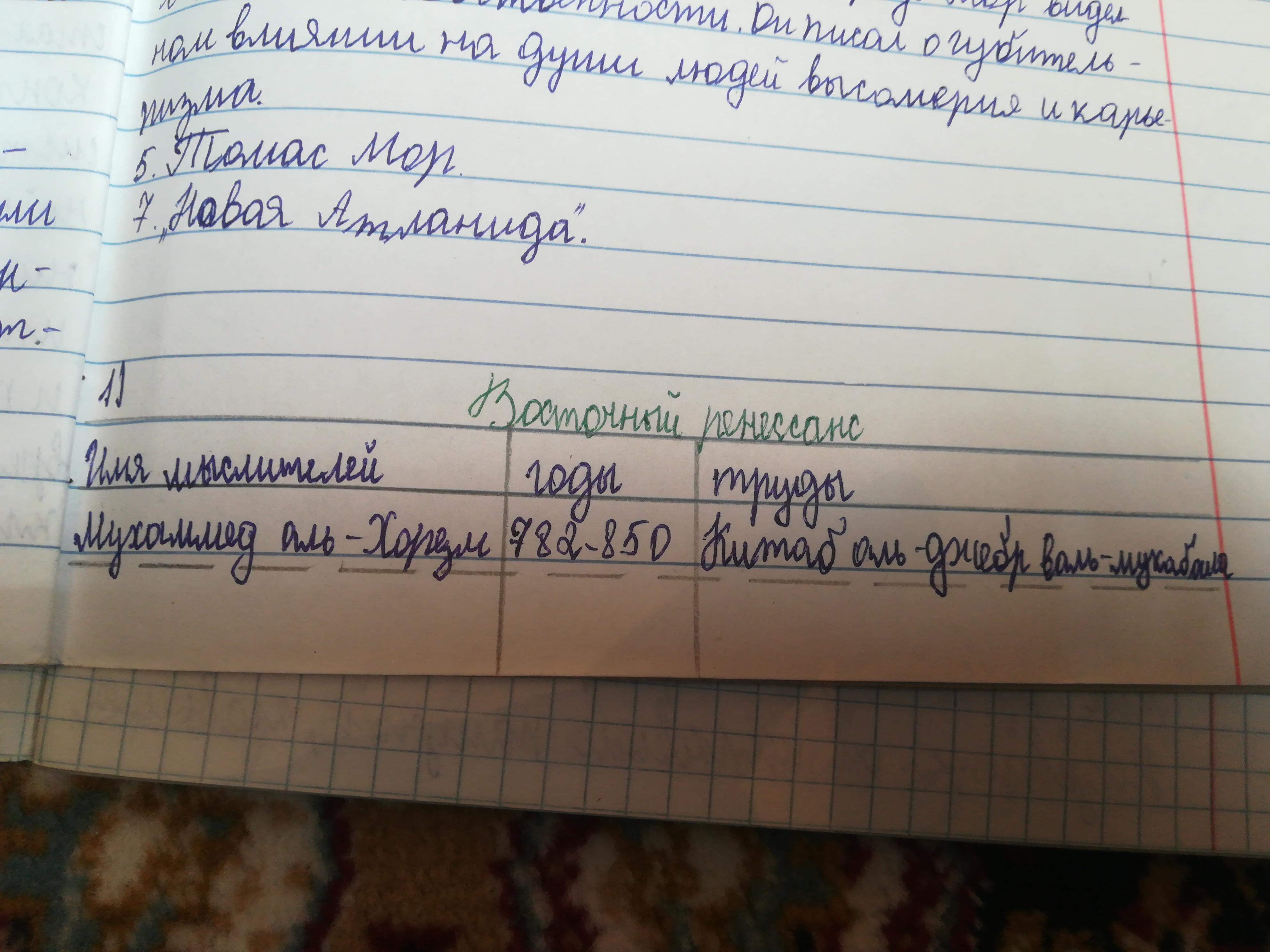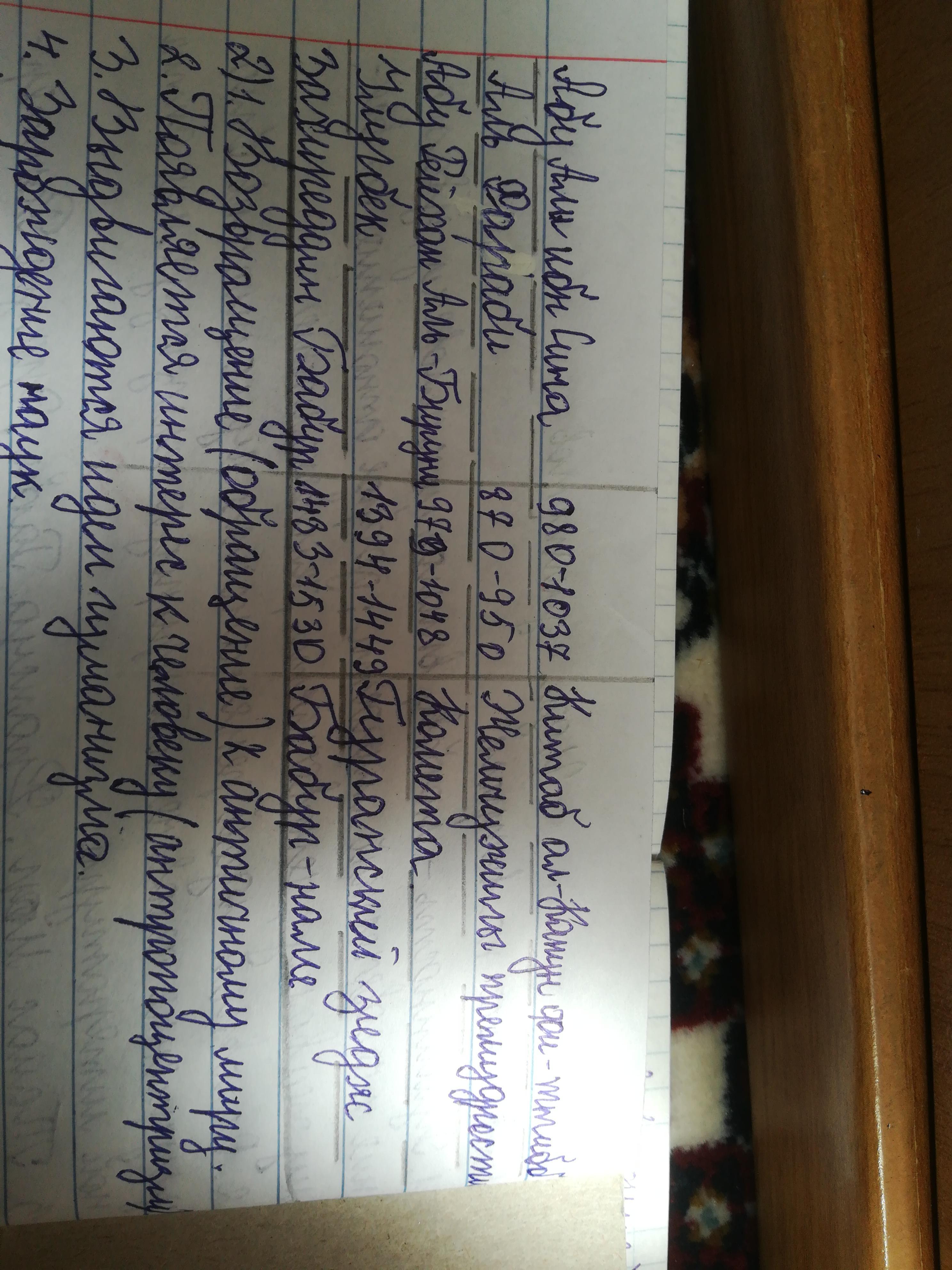 заполните таблицу: Деятель: Аль-Фараби, Абу-Али инб Сина, Абу Рейхан Аль-Бируни, Зихиреддин Мухаммед Бабур.