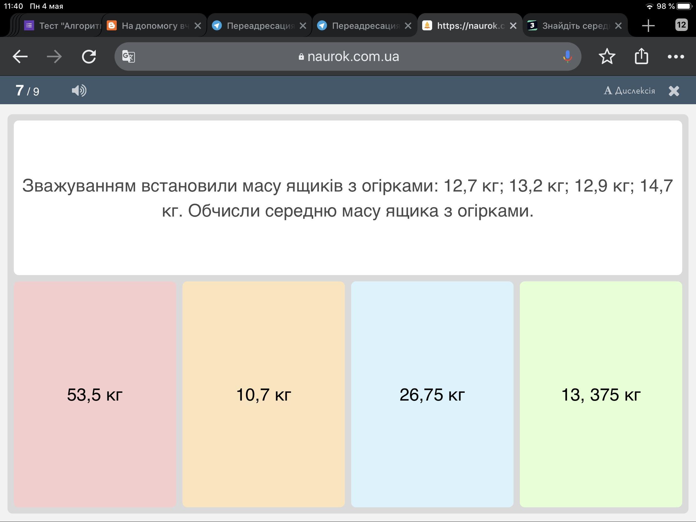 5) 12,7+13,2+12,9+14,7=53,5 ; 53,5÷4= 13,375