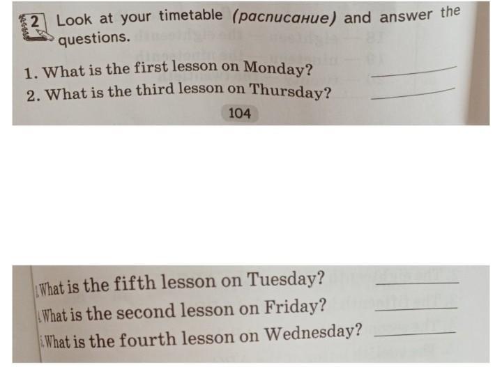 Ты по идеи должен ответить на вопрос: "какой будет первый урок в понедельник" свой урок а ни чей то и дальше так.