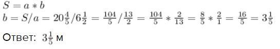 площадь прямоугольника равна 20 целых 4/5 метров в квадрате . Найдите высоту этого прямоугольника , если его основание равно 6 целых 1/2 метров