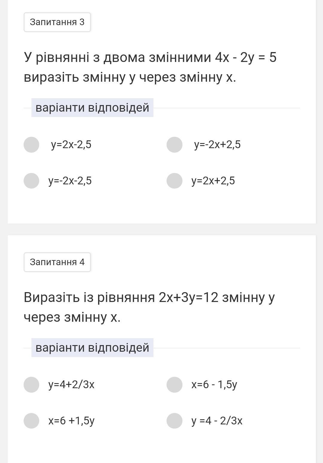 1.У рівнянні з двома змінними 4х - 2у = 5 виразіть змінну у через змінну х.