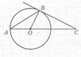 На рисунку точка О - центр кола. ВС - дотична до кола, кут С дорівнює 30 градусів. Знайти кути трикутника АОВ.