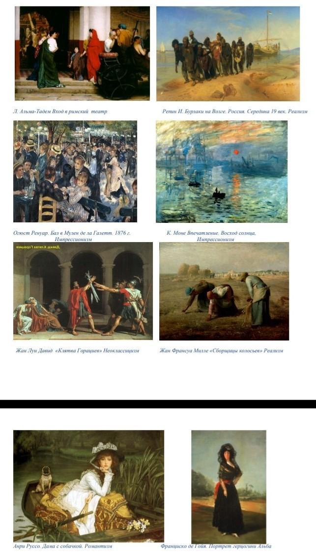 Используя приложение 2 (иллюстрации картин с указанными названиями стилей XIX в.),