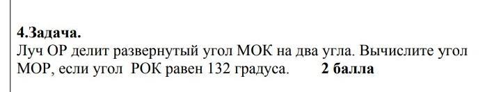 Луч OP делит развернутый угол MOK на два угла Вычислите угол MOP если угол POK равен 132градуса